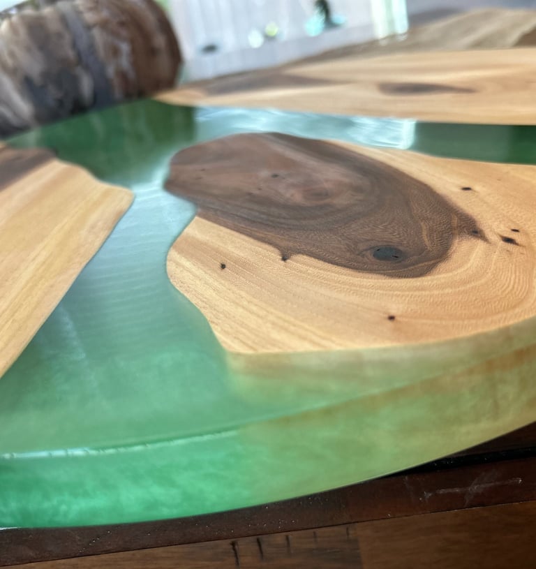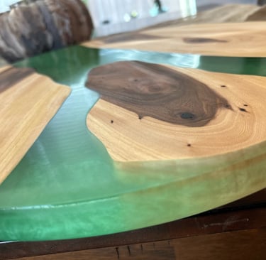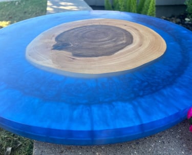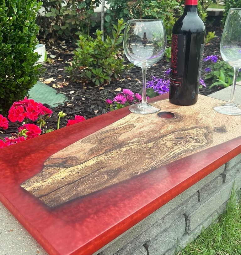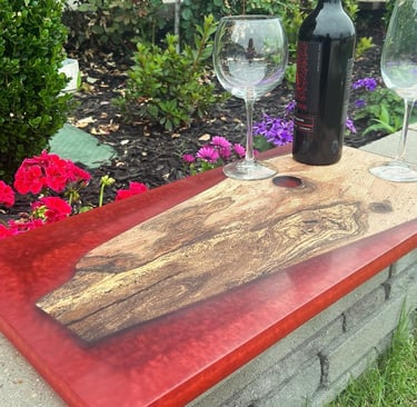 Epoxy Resin is used in our Trays, Lazy Susans, and fill in voids on all boards. Color choices are endless! We will verify the color after you place the order.